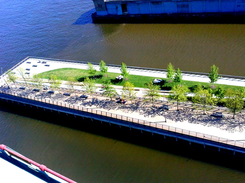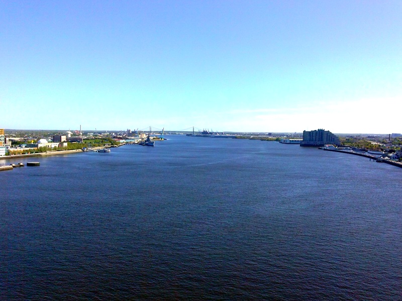 Foto 3: Vista do lado direito da ponte no sentido PA - NJ e no lado direito da foto um pedacinho de Penn's Landing.