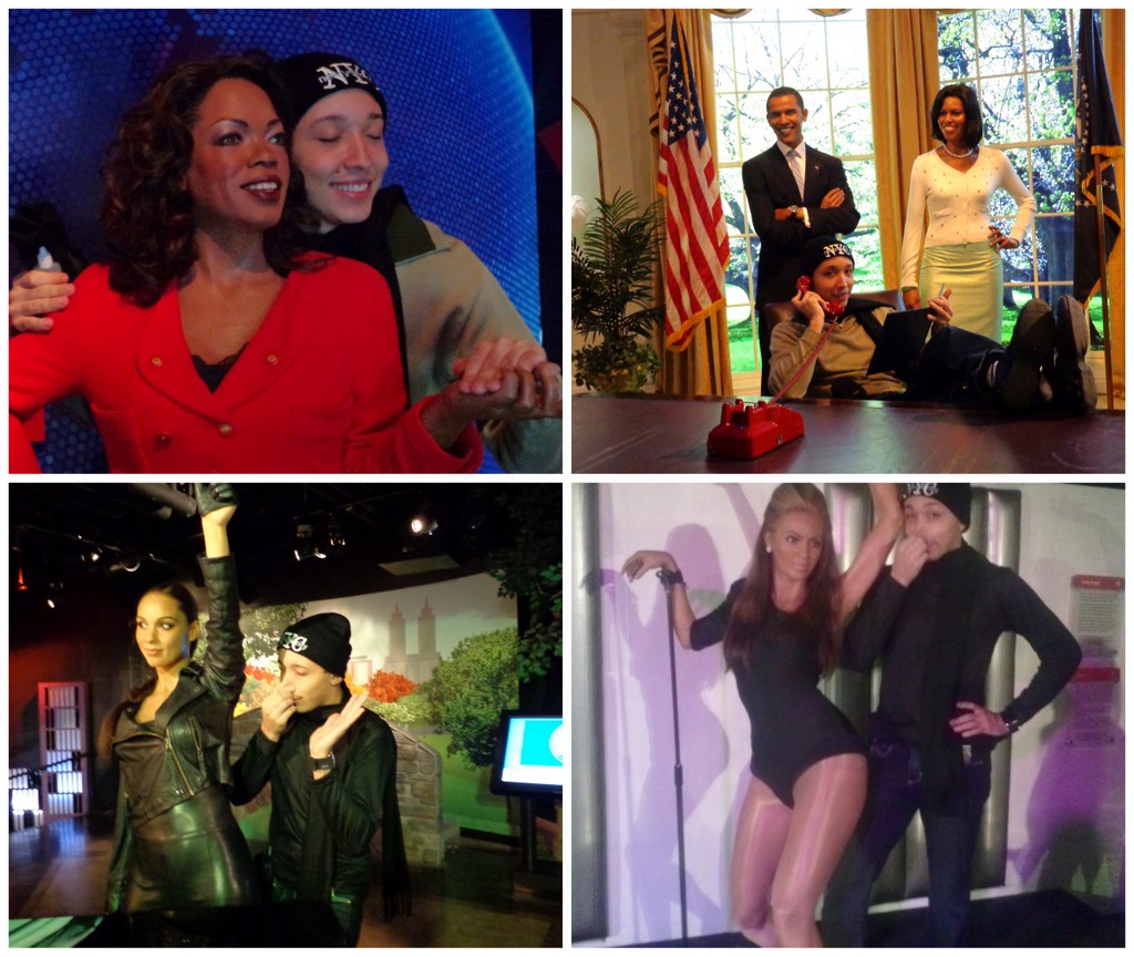 Cheguei lá todo feliz pra tirar uma foto com aquele "monte de gente famosa feito de cera", especialmente minha linda, idolatrada, eterna Shakira. Ao entrar na primeira parte do museu podemos ver uma área gigante aberta com várias pessoas famosas já nos esperando ali mesmo. Julia Roberts, Johnny Depp, George Clooney, Jennifer Aniston, Ozzy Osbourne e por aí vai. A primeira coisa que eu pensei foi: "como vou tirar fotos com os famosos se estou sozinho? Preciso de alguém!" Aí, eu voltei pro comecinho e fiquei esperando alguém entrar sozinho pra eu abordar. Nisso chegou uma menina que tinha todo o jeito de ser Indiana. Corri pra ela e, ainda com um pouco de vergonha, perguntei se ela estava só, ela disse que sim e, eu, usando meu sorriso de 1 milhão de dólares a convenci a andar comigo pelo museu enquanto nós dois nos ajudávamos com as fotos.